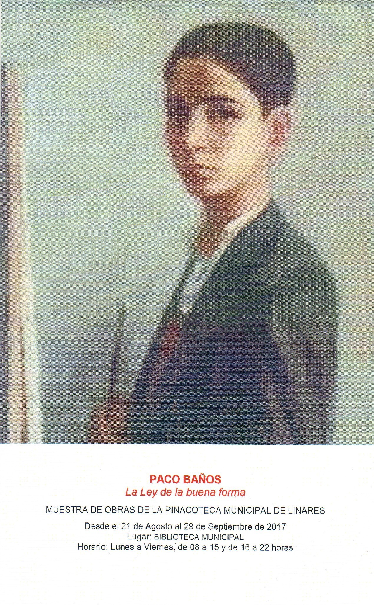 El próximo 21 de agosto, y organizada por la Concejalía de Cultura, se inaugura en la Biblioteca Municipal la muestra "Paco Baños. La ley de la buena forma" que dará a conocer ocho obras de nuestro ilustre pintor, pertenecientes a los fondos de la Pinacoteca Municipal, fondos que desde hace ya más de un año custodia el CEL y sobre los que se está trabajando.