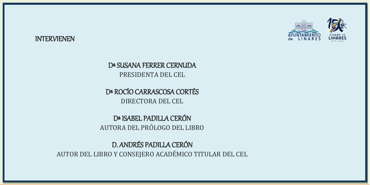 Centro de Estudios Linarenses - C/ Corredera de San Marcos, 40 - Linares (Jaén) - cel@aytolinares.es -